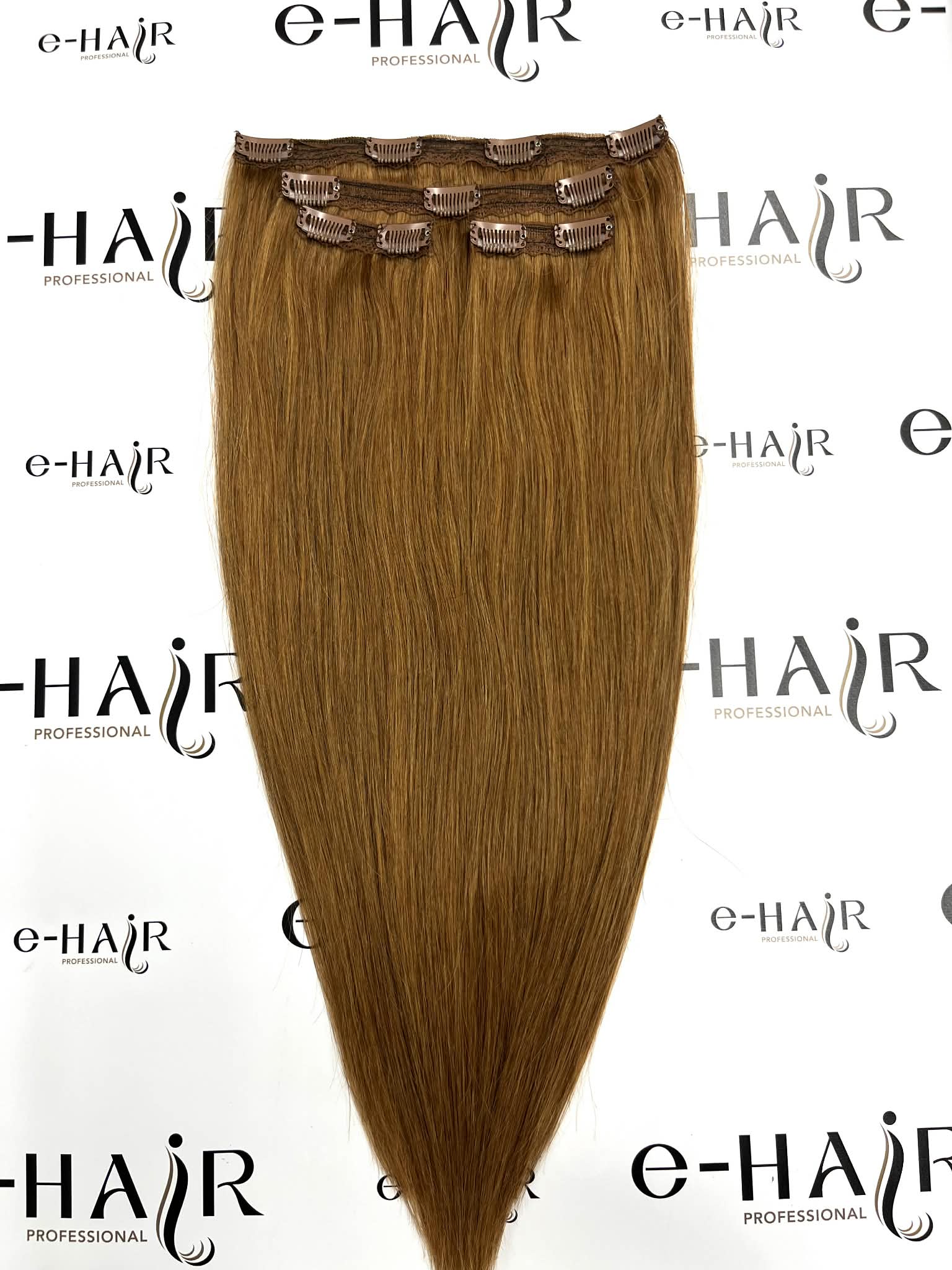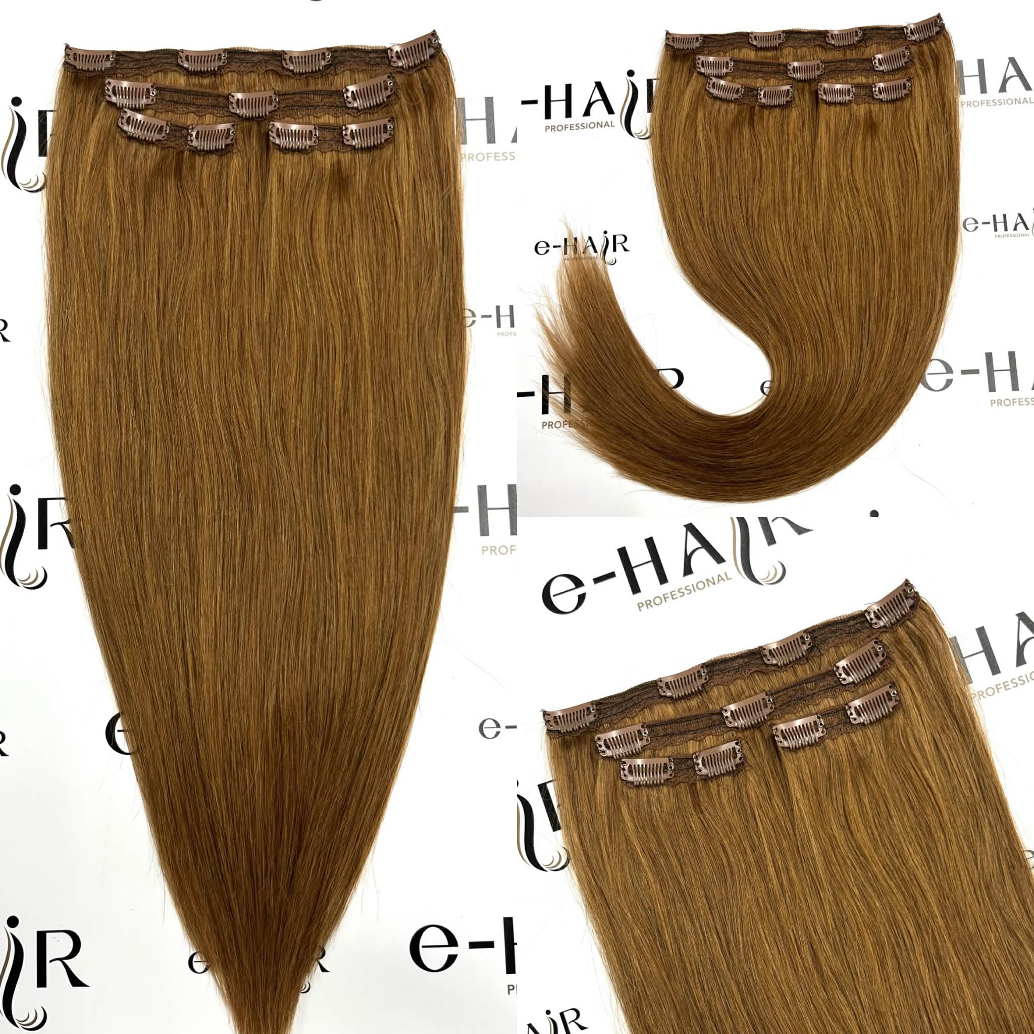 Οι τρέσες clip-in διαθέτουν ανθεκτικά clips που τοποθετούνται στο φυσικό μαλλί εύκολα και με ασφάλεια — χωρίς τη βοήθεια κομμωτή.