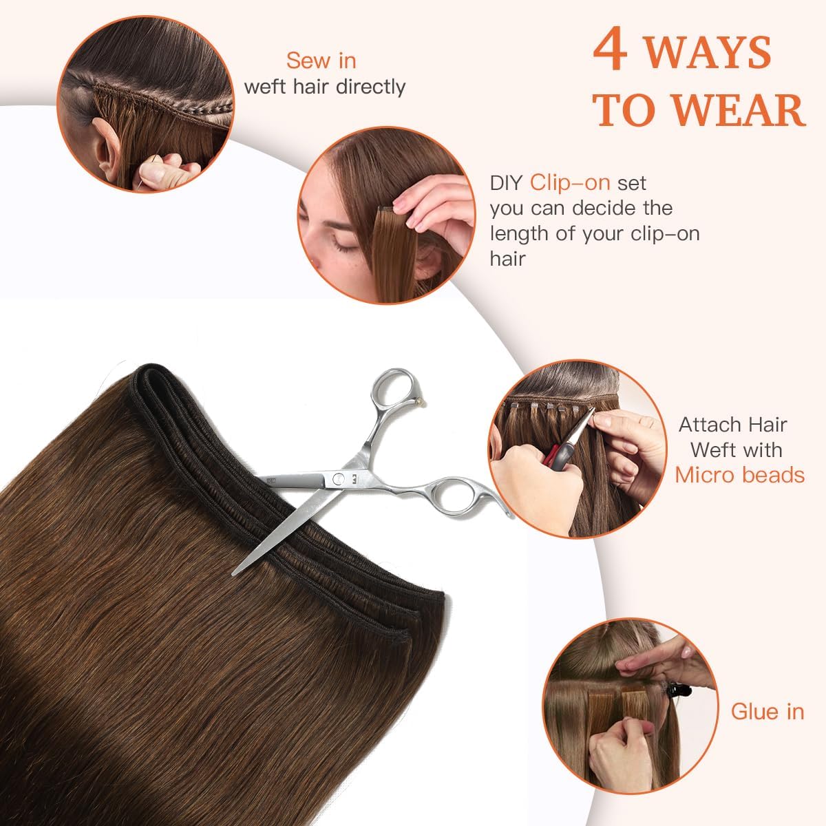 - Εφαρμογή: Μπορείτε να ράψετε την τρέσα στα μαλλιά σας με τη μέθοδο που επιλέγετε (συνήθως αναφέρεται σε ραφή, αλλά μπορεί να σημαίνει και άλλες μεθόδους εφαρμογής, microrings, clips ).